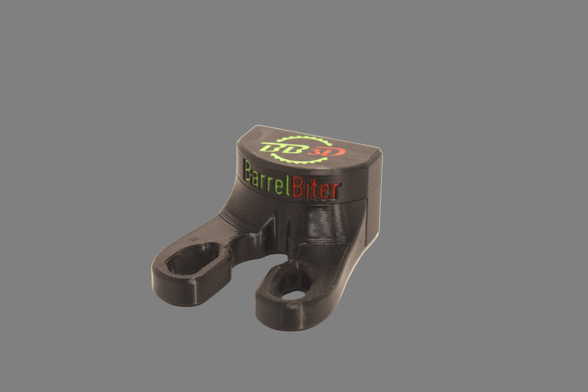 This version of the BarrelBiter is 3D printed in tough, flexible TPU and designed to clamp directly onto Beavertail boat blind rails, which are covered in canvas and match our clamp size perfectly. It also fits bare ¾" EMT conduit, since it shares the same outer diameter.