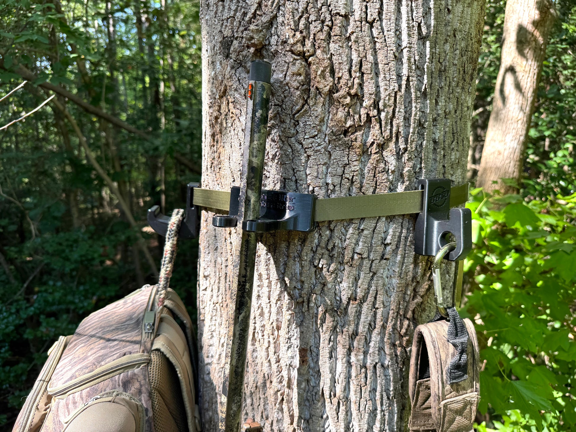 With two cinch strap size options available, you can set up on trees up to 36" in diameter. The included ABS gear bag hook and oversized D-ring hook support up to 100 lbs—giving you secure options for hanging blind bags, calls, or other gear. These components are durable and cold-resistant down to around –20°F, making them a reliable option even in harsh winter conditions. A tree-friendly solution—ideal for public land hunters where screw-in hooks aren’t allowed.