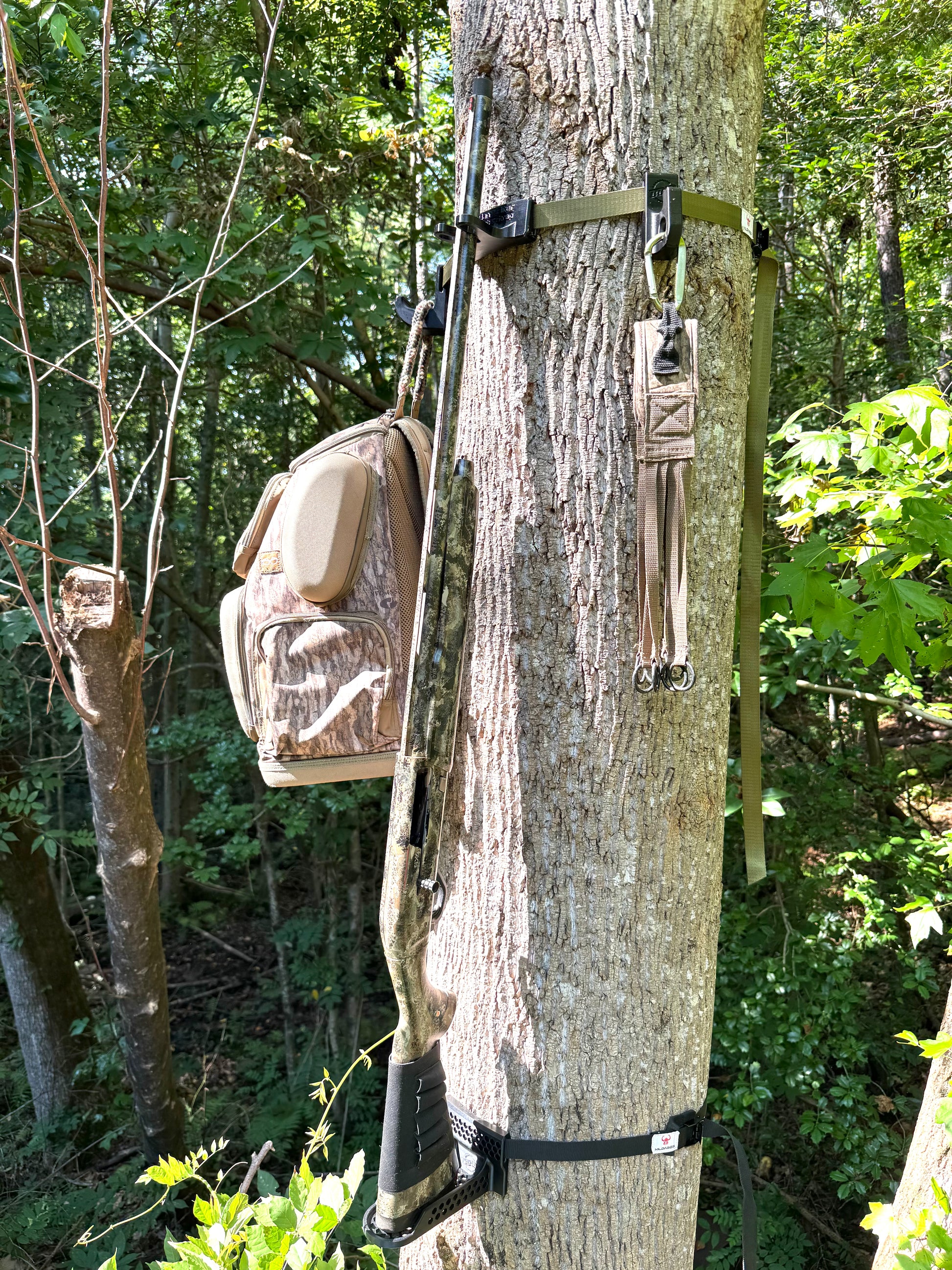 Whether you're locking in your shotgun or organizing your setup, the Biskit Built Timber Strap keeps everything off the ground and right where you need it.